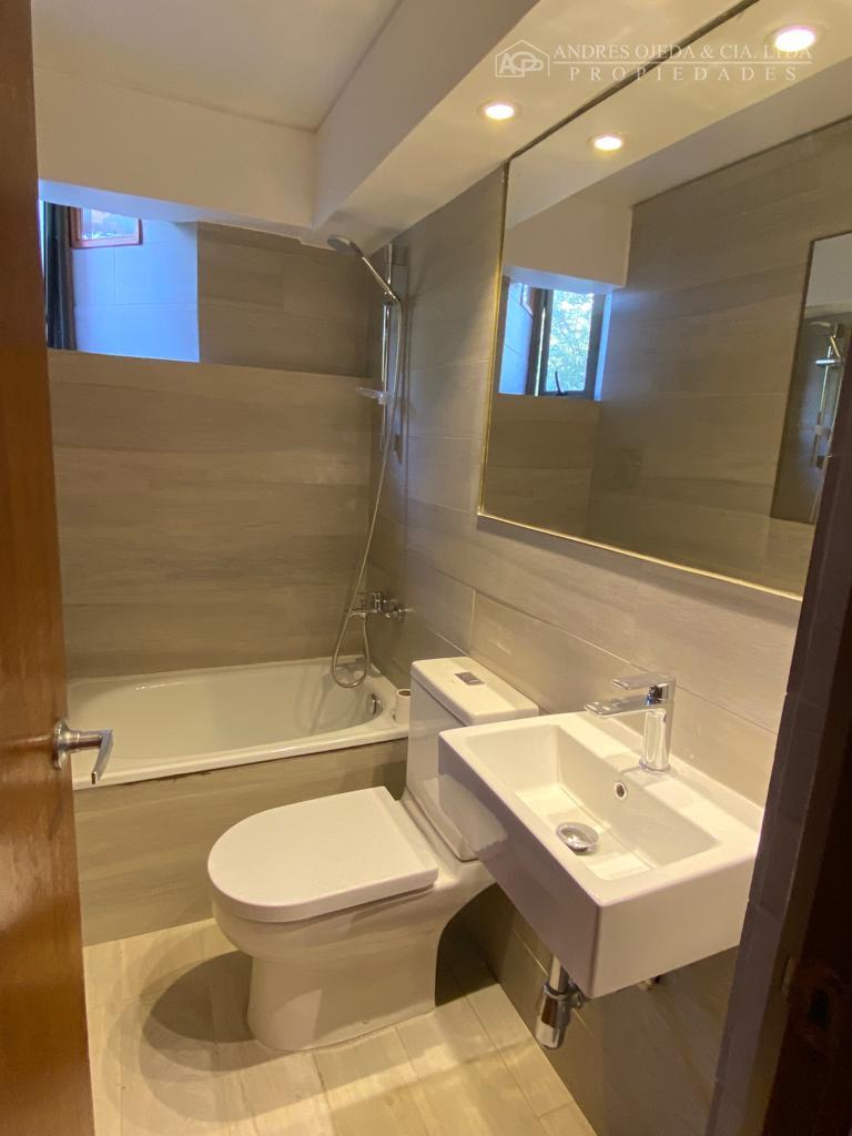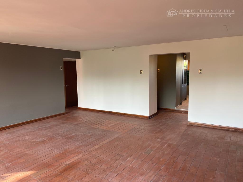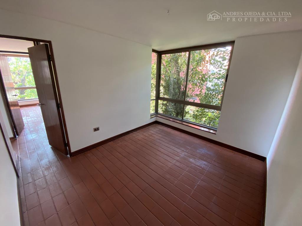 Departamento con una superficie total y útil de 100 m², ubicado en un entorno residencial rodeado de áreas verdes y vegetación. El edificio cuenta con acceso a través de escalera exterior y una entrada principal con ventanales que dan paso a un amplio sector de estar. El living destaca por sus ventanales de pared a pared, que permiten vista hacia áreas exteriores y acceso a una terraza cerrada, 2 dormitorios, 1 servicio, 2 baños, cocina semi-integral, piso de batuco, lavadero, bodega, estac. pequeño(auto chico), sin ascensor.- El departamento dispone de tres dormitorios con pisos cerámicos y amplias ventanas, aportando iluminación natural al interior. La cocina es independiente, equipada con encimera, horno empotrado y muebles en tonos neutros, con una distribución que aprovecha eficientemente el espacio de trabajo y almacenamiento. La propiedad contempla dos baños completos con terminaciones en cerámica, uno de ellos con tina y ventanas para ventilación natural. Cuenta además con una bodega para almacenamiento adicional. No se permite la tenencia de mascotas en este departamento.